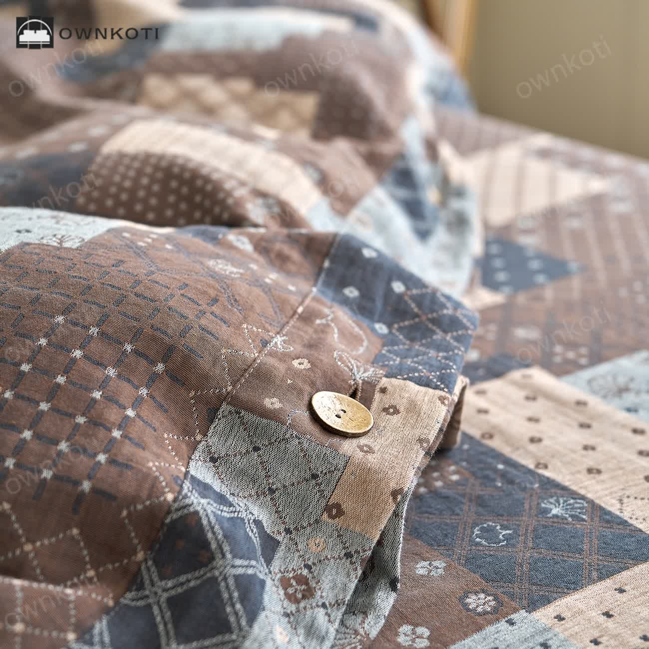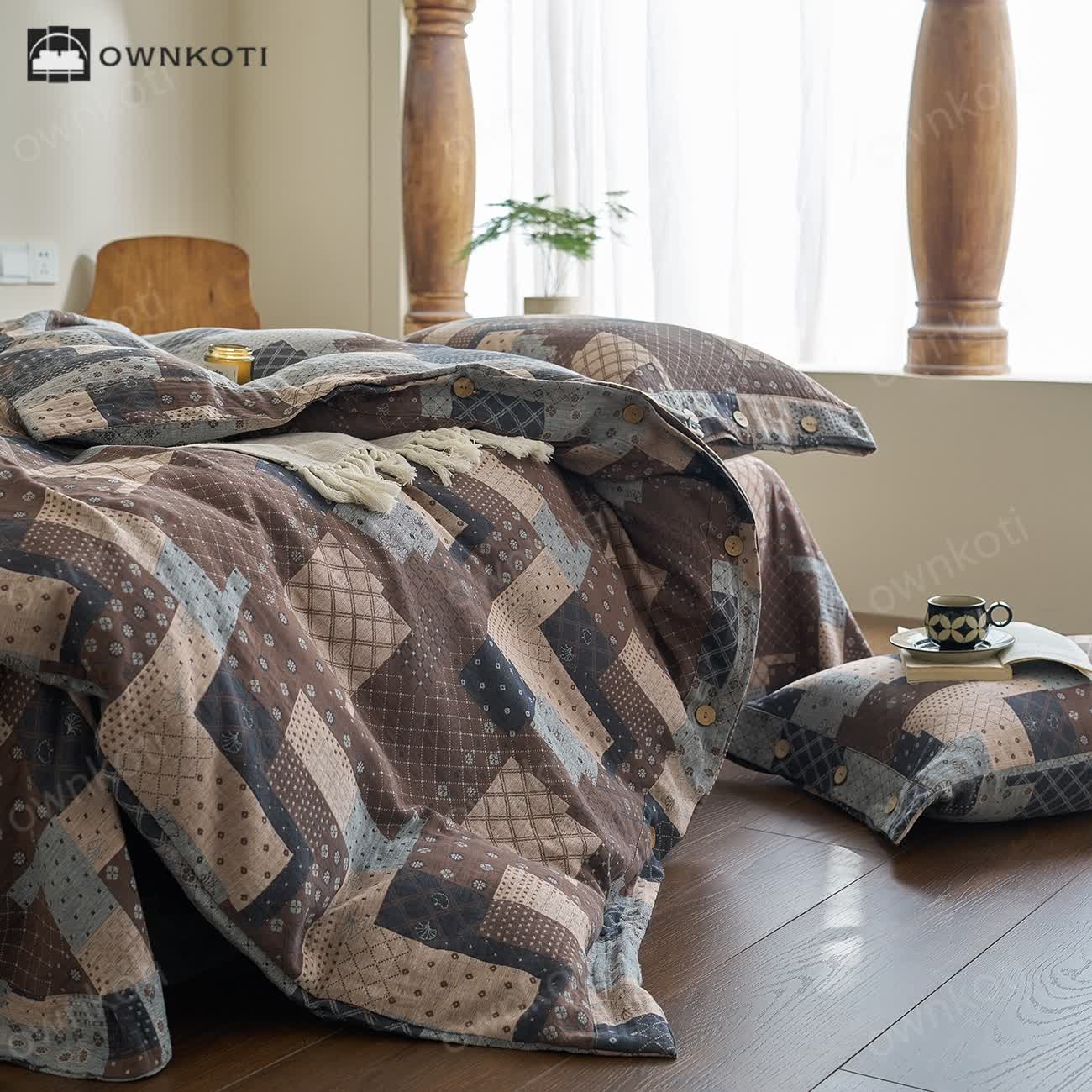Patchwork Geometric Cotton Gauze Bedding Set (4PCS)