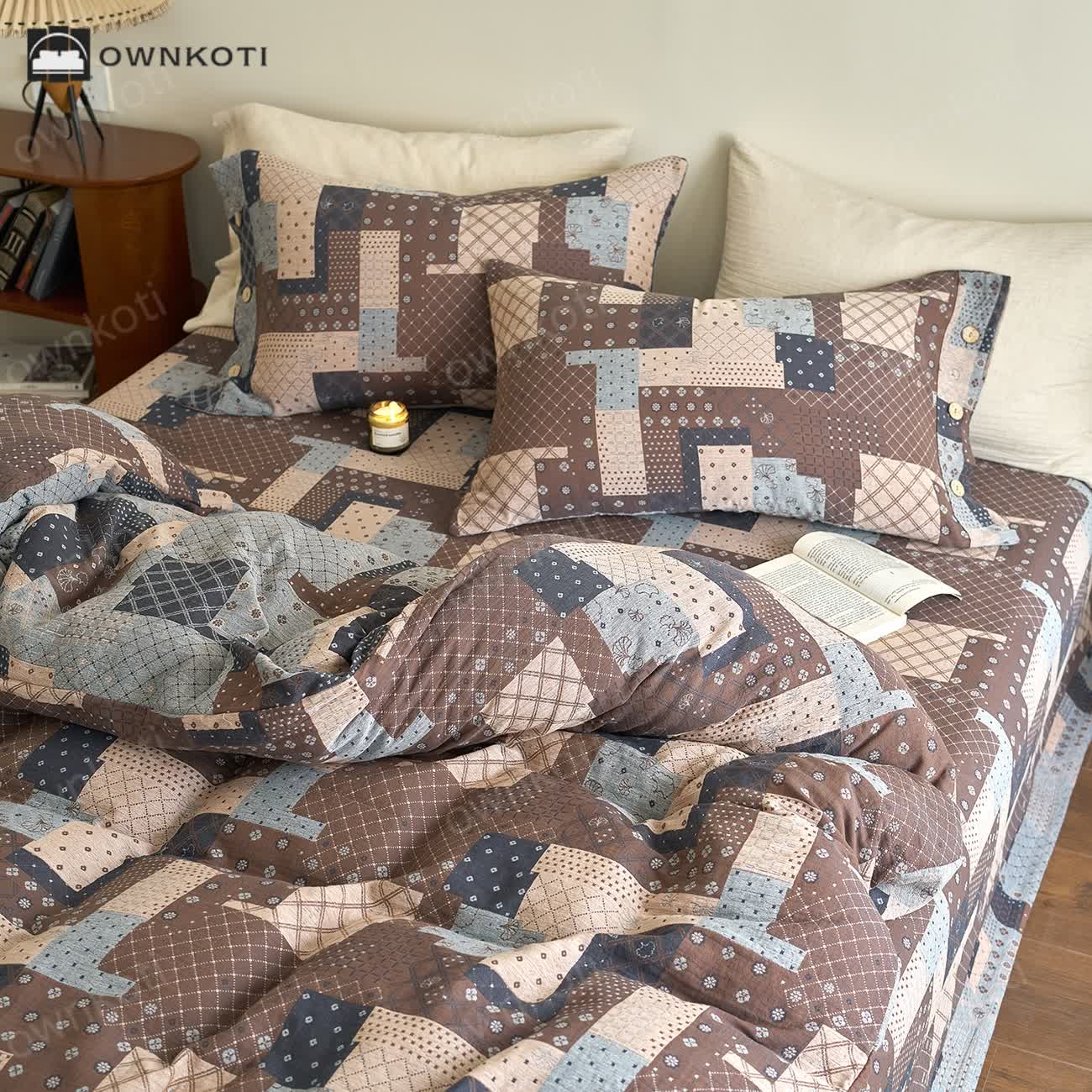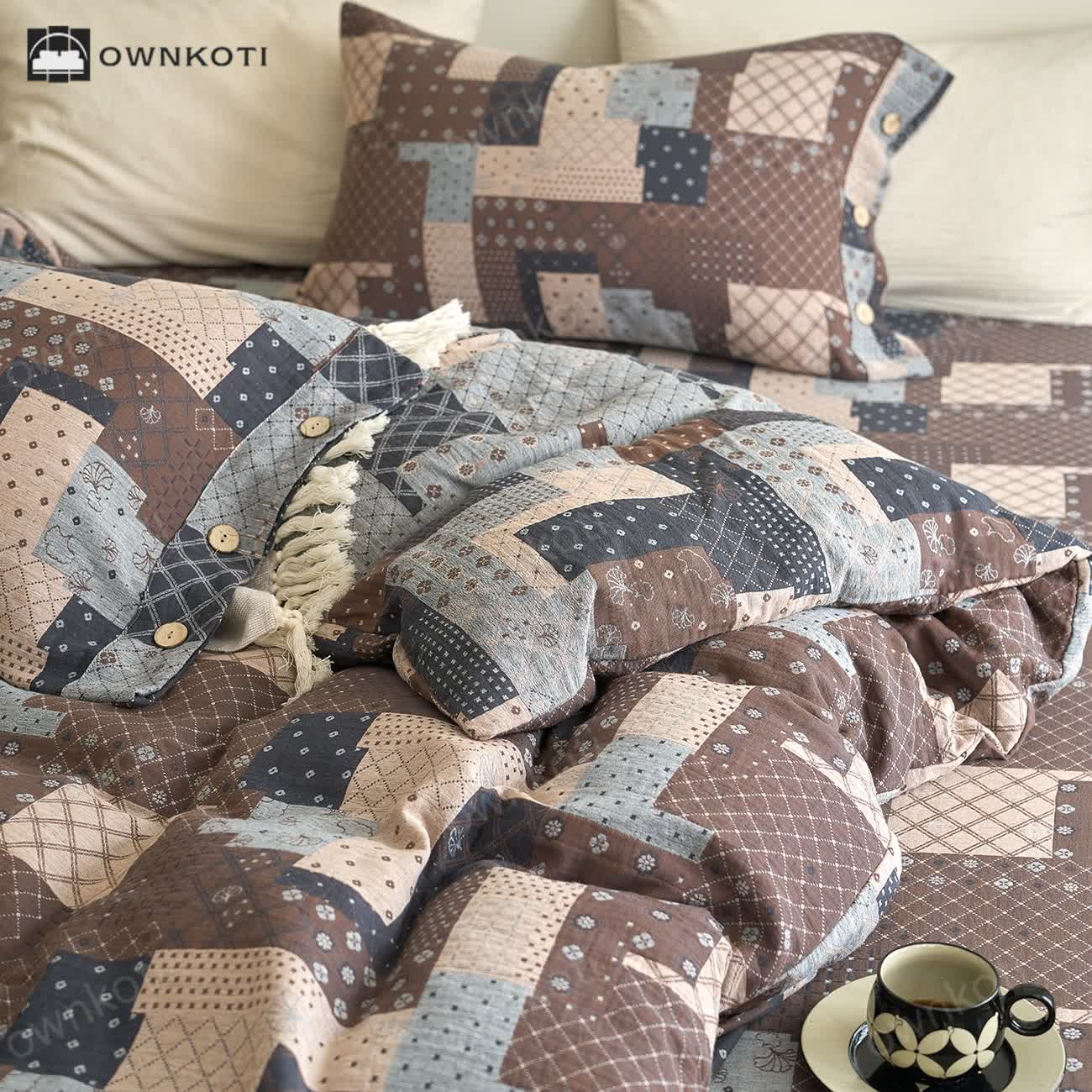 Crafted from high-quality cotton gauze, our bedding set is ultra-soft, breathable, and lightweight, ensuring a cozy sleep year-round. The stunning patchwork of geometric patterns adds a playful yet sophisticated touch, transforming your bedroom into a stylish sanctuary with its bold shapes and colors.