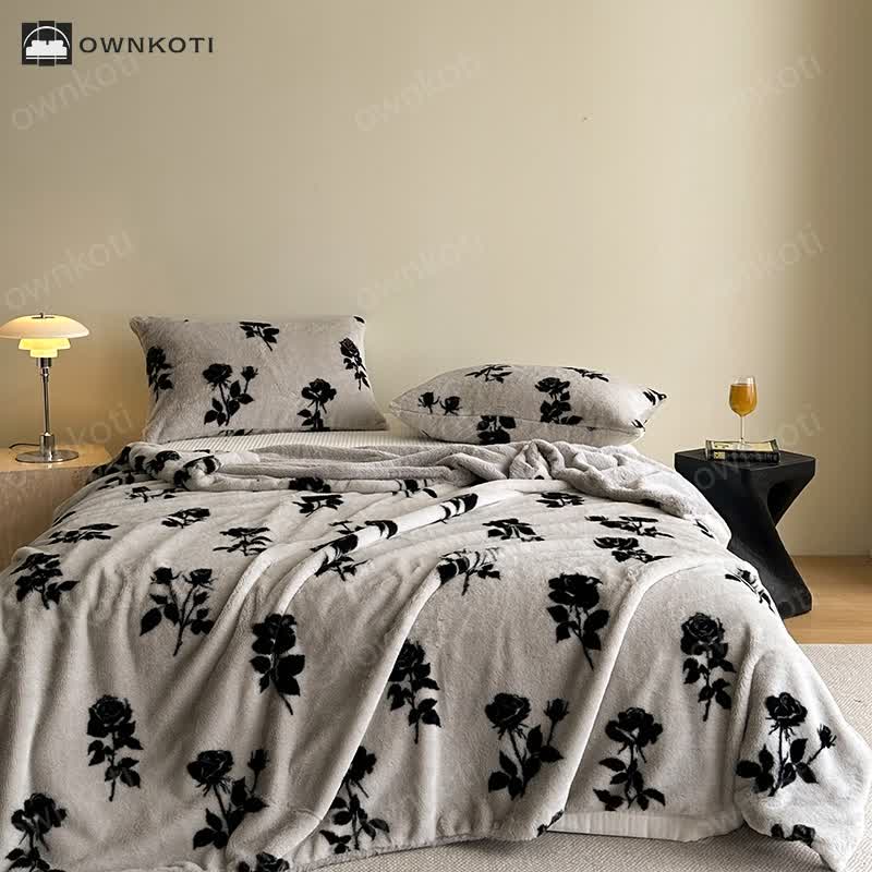 Retro Rose Velvet Warm Throw Blanket