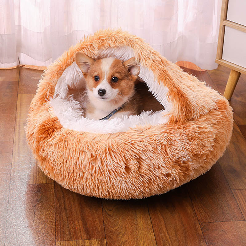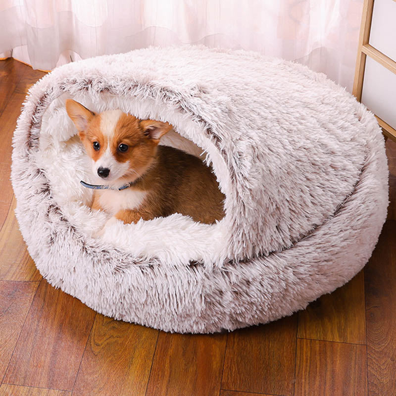Semi-enclosed Warm Fleece Pet Bed