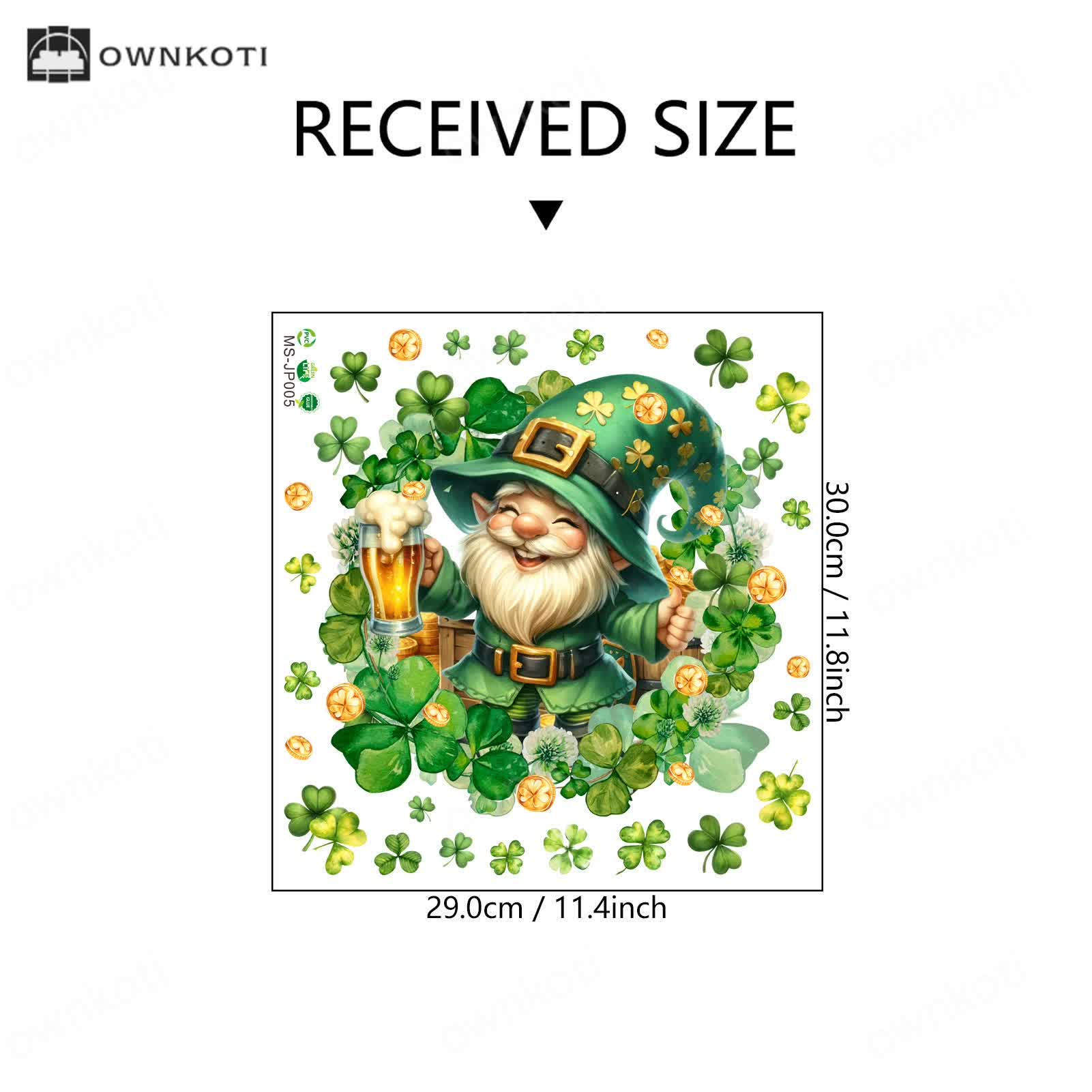 This charming decoration adds a festive touch to your St. Patrick's Day celebrations or any celebration of Irish culture. Featuring an adorable leprechaun surrounded by vibrant shamrocks, it creates a whimsical atmosphere that captures the spirit of the holiday. Made from durable, non-toxic vinyl, this cling is designed for indoor use and maintains its bright colors