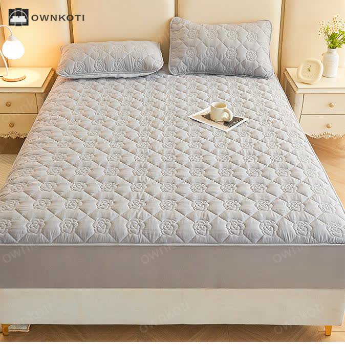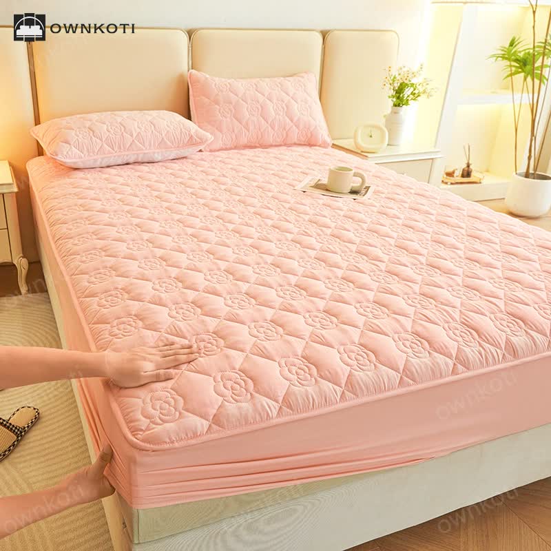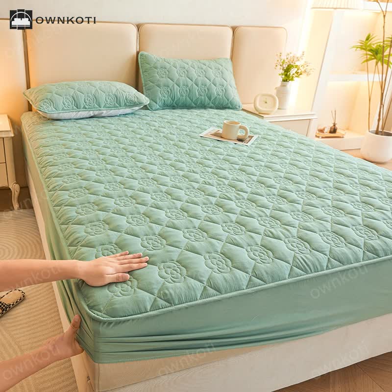 This fitted sheet is soft, skin-friendly, and breathable, featuring good color fastness and a gentle touch. Made of premium microfibers, it is flat, fluffy, and moisture-wicking, with antibacterial and anti-mite properties that inhibit bacterial growth. The patterned quilting design boasts beautiful, three-dimensional shapes and fine stitches that securely fix the inner core.