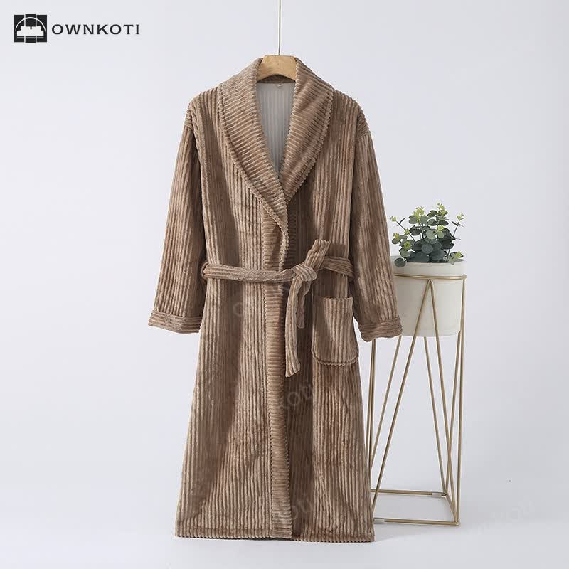 This bathrobe is made from soft, durable fleece, providing exceptional warmth and a luxurious feel for chilly weather. Its classic solid colors add a sleek, stylish touch to your loungewear and complement home decor.