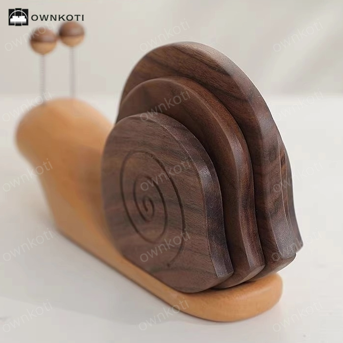 Crafted from high-quality black walnut wood, this durable coaster features an adorable cartoon snail shape that adds a playful touch to your kitchen or dining area. It effectively protects surfaces from heat damage, keeping tabletops safe from hot cups and mugs.