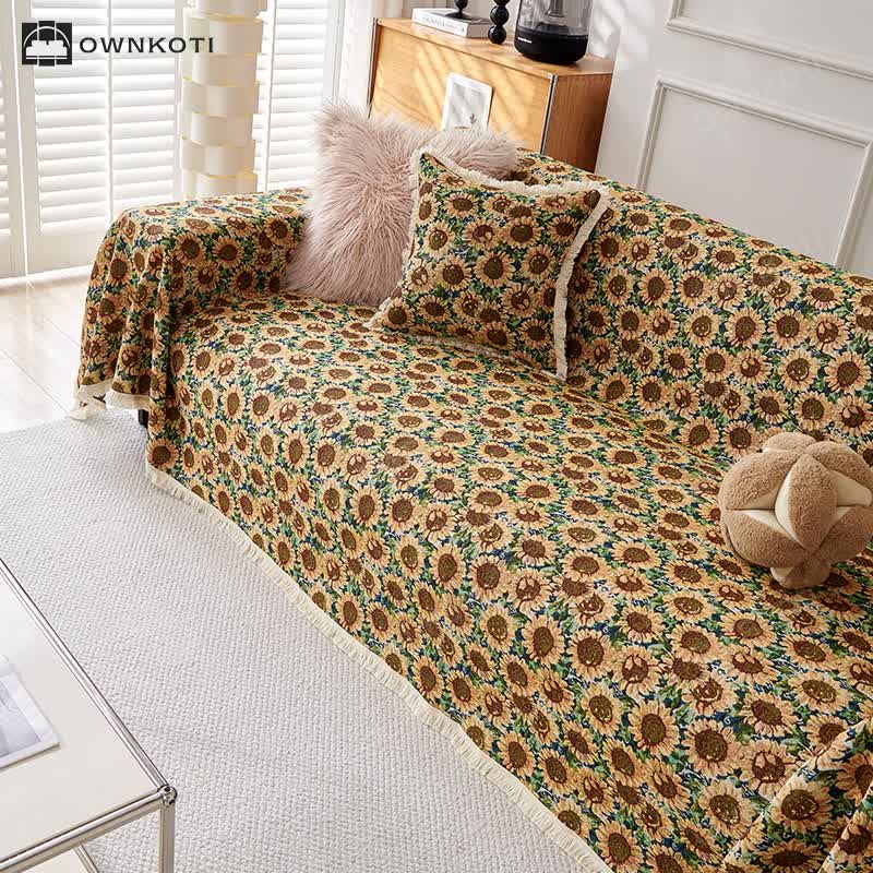 Sunflower Cotton Linen Tassel Couch Slipcover