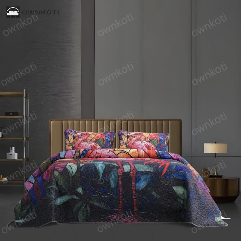 Tropical-style Flamingo Quilted Bedding Set(3PCS)