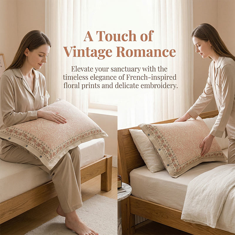 Features:Crafted from a natural cotton-linen blend with a subtly textured weave, this pillowcase brings a soft, romantic French vintage feel to your bed. A delicate vintage floral print in low-saturation vermillion sits against a warm beige background, framed by embroidered roses along the border.Available only at Ownkoti,The fabric is breathable, moisture-wicking, and naturally wrinkle-resistant, helping you stay cool and dry through the night.