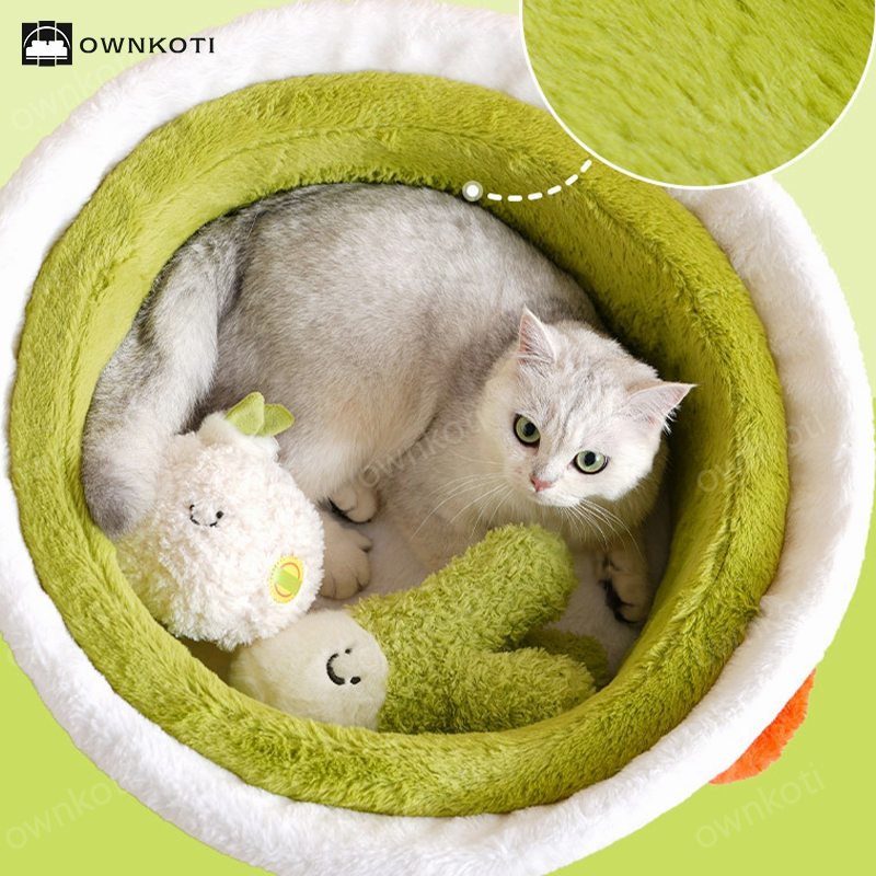 This pet bed features a cute plush casserole shape that warmly embraces your furry friend. Its thick, insulated design keeps pets cozy for sweet dreams. Spacious and soft, it accommodates cats up to 20 pounds for blissful naps. The removable cushion allows for easy cleaning, and the bed retains its shape over time.