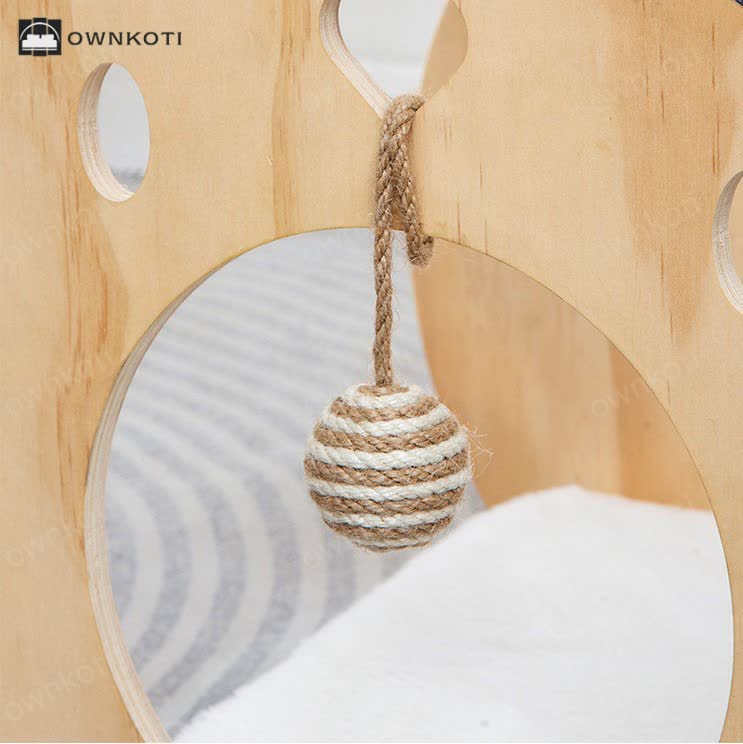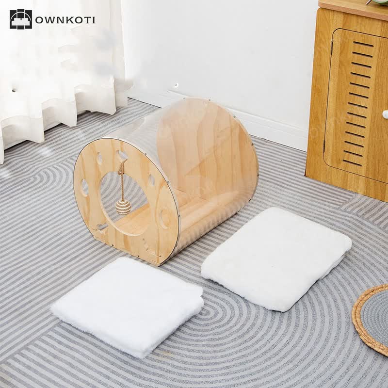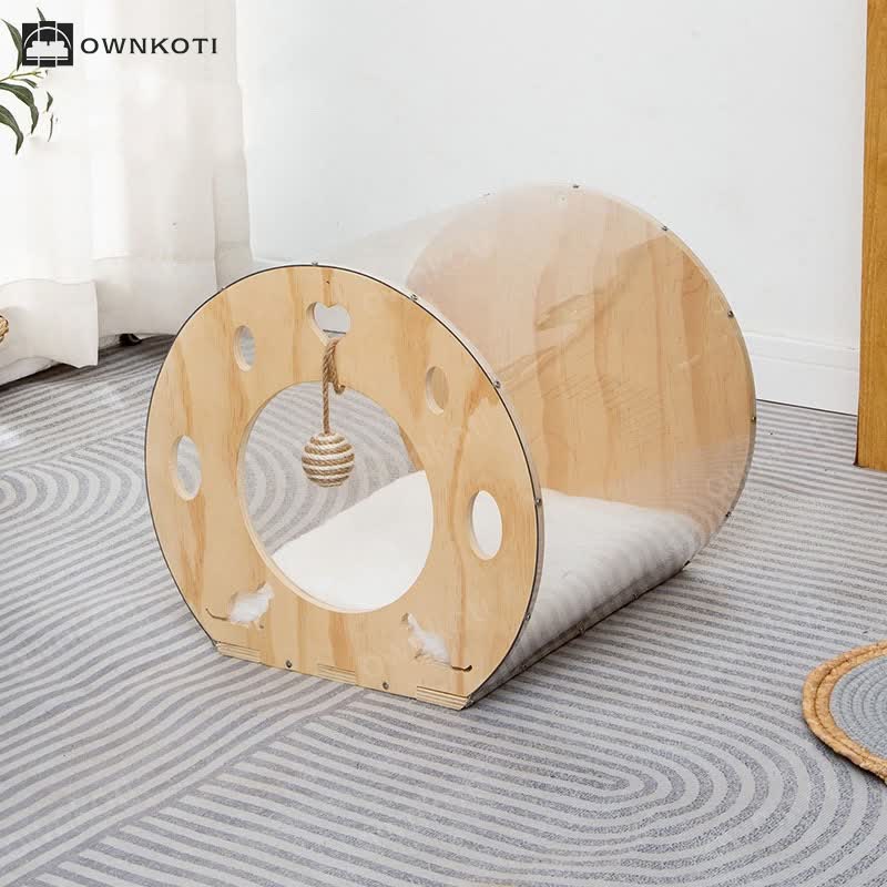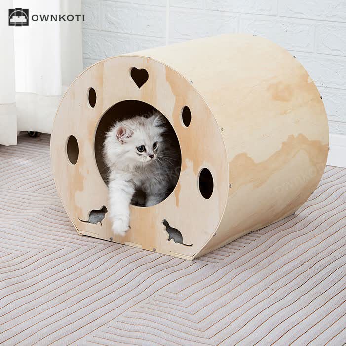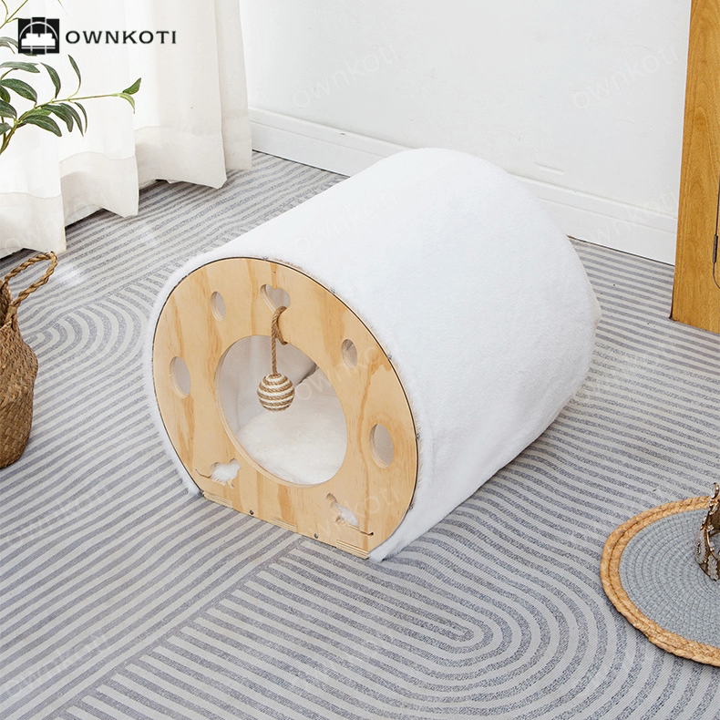 This pet bed features an open design that promotes ventilation and breathability, making it suitable for all seasons. It serves multiple purposes, allowing cats to sharpen their claws, play, and sleep comfortably. The spacious interior can accommodate larger cats, providing them with a roomy and comfortable home.